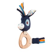 Une petite frimousse toute douce, un son joyeux et un anneau en bois à sucer font de ce hochet une expérience de chaque instant pour les tout-petits.