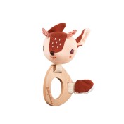 Une petite frimousse toute douce, un son joyeux et un anneau en bois à sucer font de ce hochet une expérience de chaque instant pour les tout-petits.