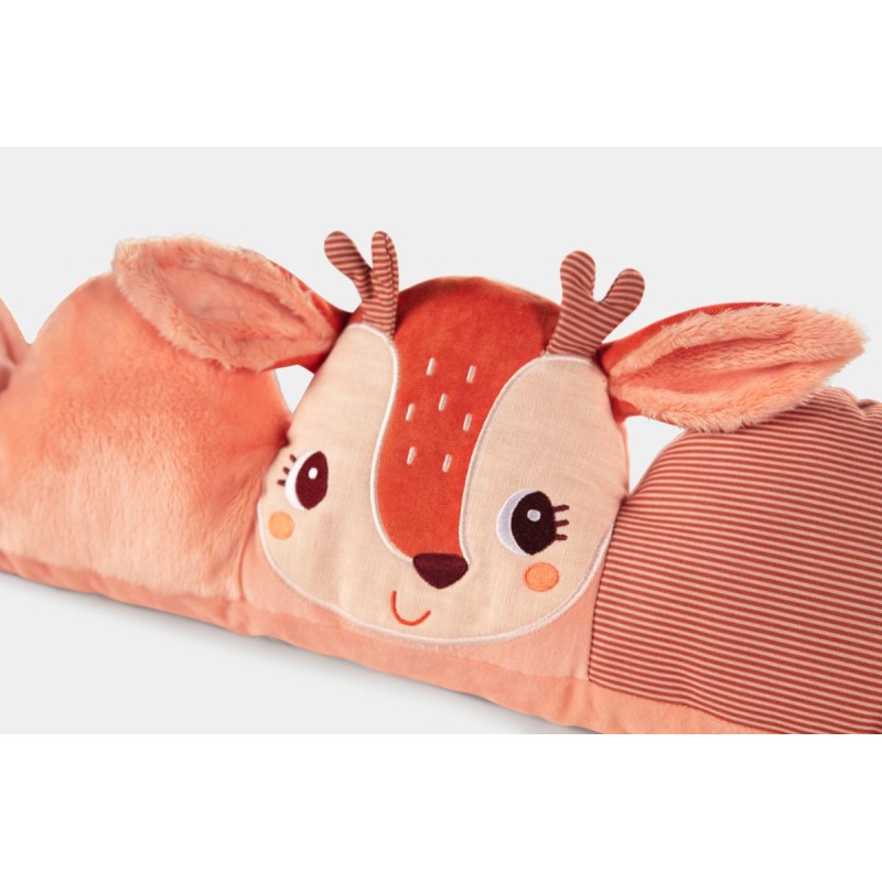 Stella le faon n’est pas seulement un joli tour de parc coloré qui accompagne votre bébé dès la naissance, il peut se transformer en jouet d’éveil grâce à son hochet et son miroir intégrés. Il fait aussi des bruits très rigolos pour amuser bébé.