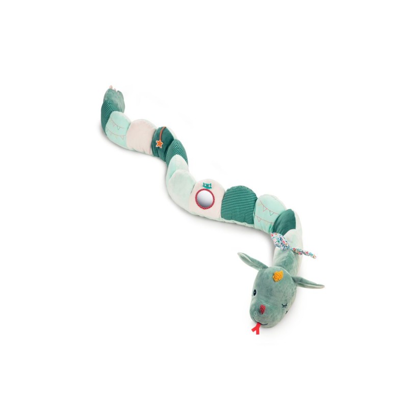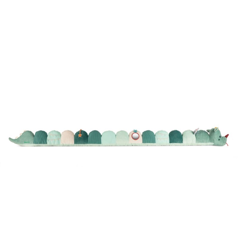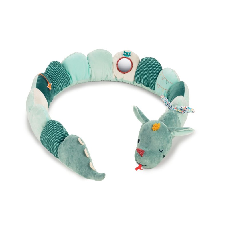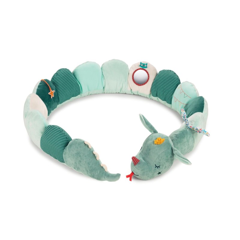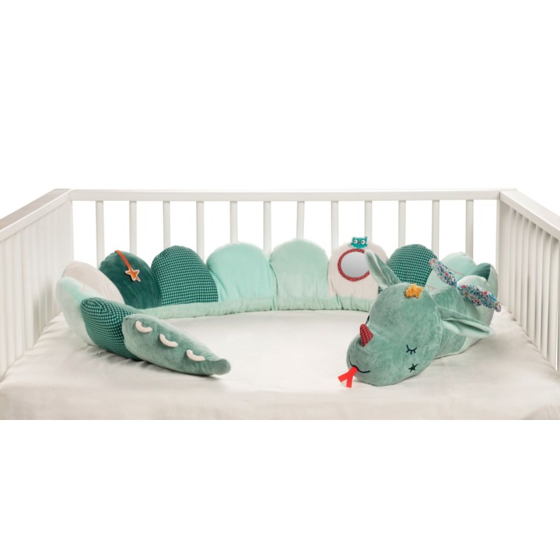 Joe le dragon n’est pas seulement un joli tour de parc coloré qui accompagne votre bébé dès la naissance, il peut se transformer en jouet d’éveil grâce à son hochet et son miroir intégrés. Il fait aussi des bruits très rigolos pour amuser bébé.