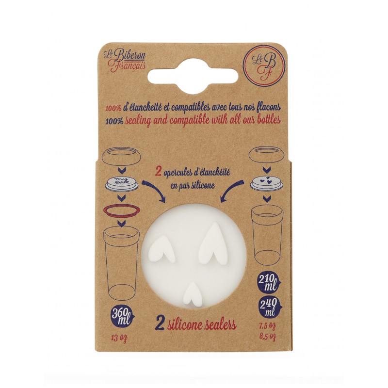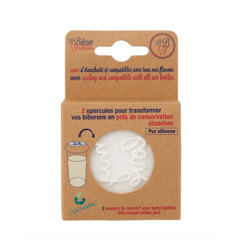 2 opercules en pure silicone qui transforment chacun de nos biberons en pots de conservation.