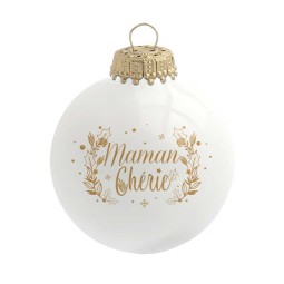 Boule de Noël en verre "Maman Chérie", cadeau personnalisé et fabriqué en Europe pour exprimer votre amour à votre maman (ou pour soi).