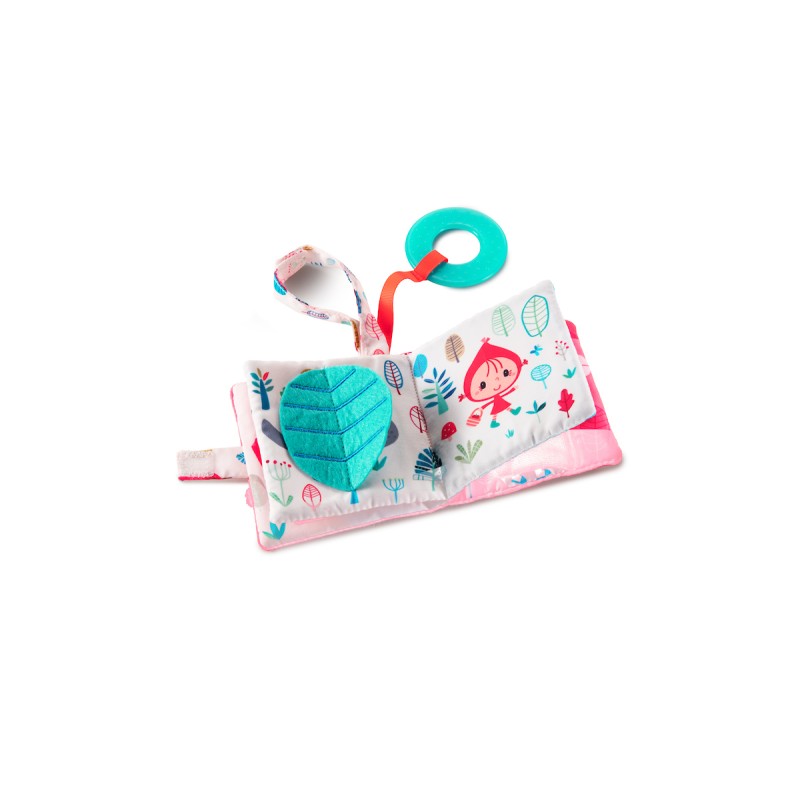 Cet imagier Chaperon Rouge plein de surprises, avec des textures pour stimuler la le toucher, la vue, l'audition et même un anneau de dentition pour soulager les gencives des bébés.