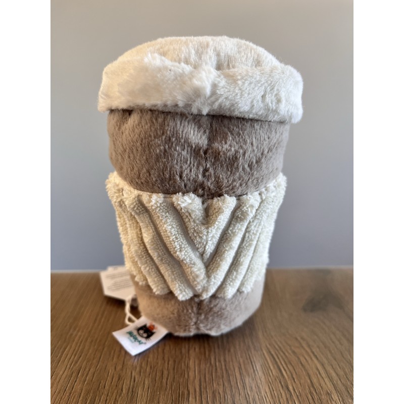 Une belle tasse avec une fourrure moka toute douce et ses pieds en velours côtelé.